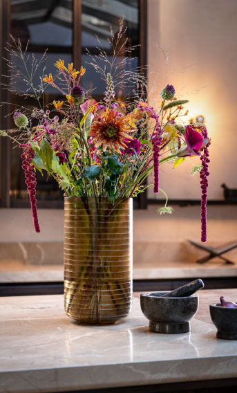 Le vase Caramel de COCOmaison est un ajout magnifique pour ceux qui aiment un look élégant et unique dans leur maison. Ce vase mesure 41 cm de haut et présente une teinte brune/sépia élégante. Le vase en verre Caramel est soufflé à la bouche, chaque pièce est donc unique. Étant donné que ce vase est fabriqué à la main, il peut y avoir de petites variations de forme et de couleur, mais cela donne au vase Caramel son propre caractère. Ce vase est parfait pour un beau bouquet de fleurs (artificielles), mais il est également superbe en tant qu'objet autonome.